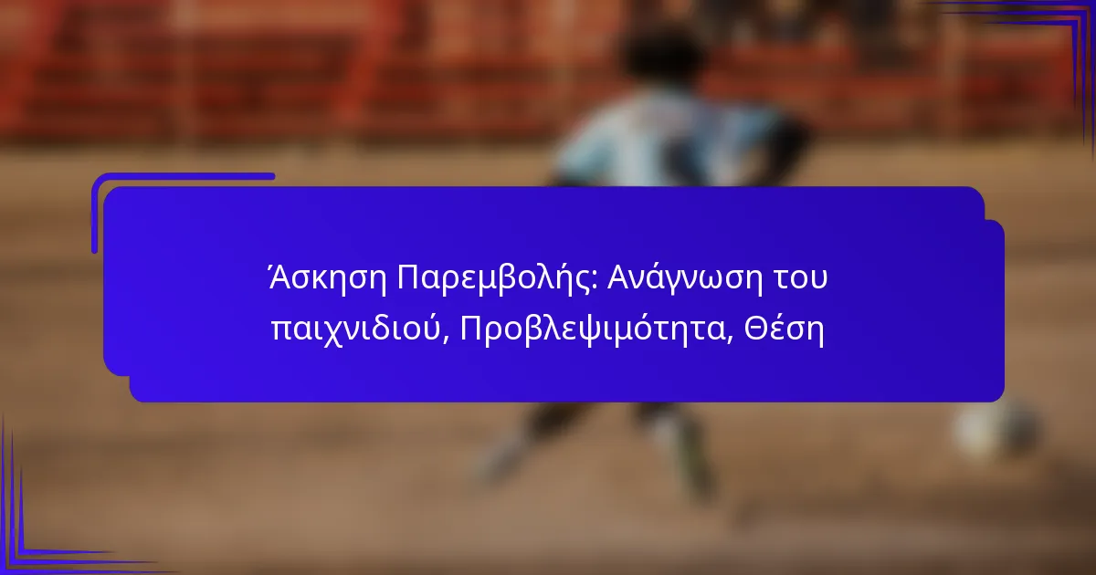 Οι ασκήσεις παρέμβασης επικεντρώνονται στη διδασκαλία των παικτών πώς να προβλέπουν τις πάσες και να παρεμβαίνουν στην μπάλα πριν φτάσει στον προορισμό της. Ο κύριος σκοπός είναι η βελτίωση των αμυντικών στρατηγικών μέσω της ενίσχυσης της γρήγορης λήψης αποφάσεων και της αύξησης της επίγνωσης της δυναμικής του παιχνιδιού.